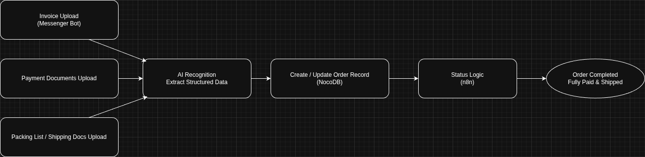 Ziel dieses Projekts war die vollständige Automatisierung eines Einkaufs-Workflows, bei dem alle relevanten Dokumente strukturiert erfasst, logisch miteinander verknüpft und der Status jeder Bestellung jederzeit abrufbar ist – bei gleichzeitig niedrigem Einstieg für die Anwender.